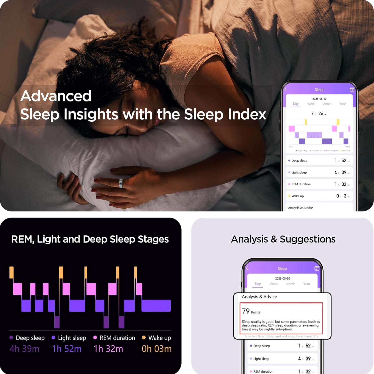 R10 Temperature Smart Fitness Ring, 5ATM Waterproof Durable Fitness Tracker for Women & Men